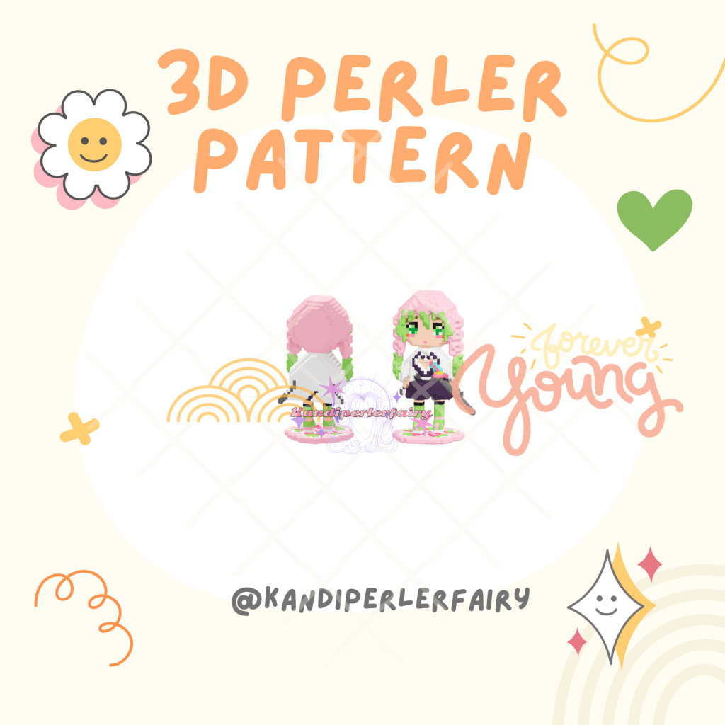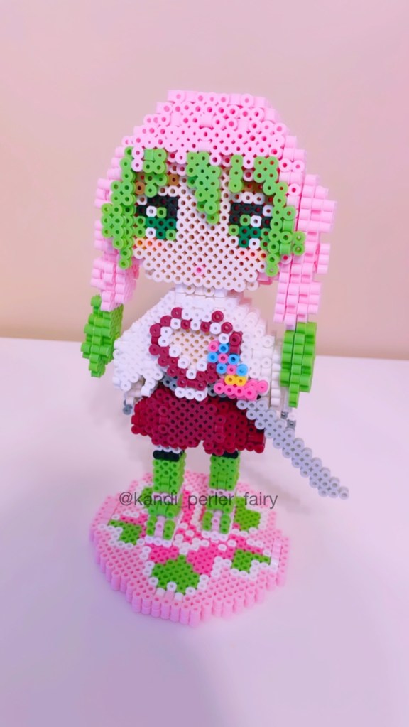 Are you an anime fan? Personally I am! But I am interested leading to Sailor Moon Series. I know a lot of you are big fan of Demon Slayer and for sure Mitsuri is a FAVOR! I like that Mitsuri is different from most anime girl because she has a more muscular build of body and she looks so cute like that. I love her thick braids hair style and color combination with light pink and fading lime green! Super cool :). Maybe one day I’m going to give it a try. So here is my attempt in making Mitsuri 3D Perler. I don’t know about you but I am loving this one. If you are interested in building her, please check out my pattern here: Pattern.